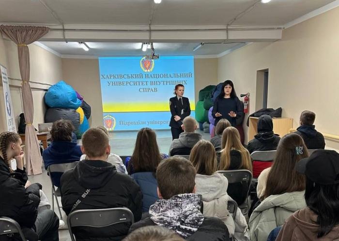 Представниці ХНУВС – провідна наукова співробітниця науково-дослідної лабораторії соціально-психологічного супроводу та реабілітації працівників ННІ №3 Євгенія ГЛАДКОВА та провідна фахівчиня відділу організації роботи з професійної орієнтації Ірина ШИРИНА поспілкувалися зі старшокласниками Пономаренківського ліцею Роганської селищної ради Харківського району Харківської області. Вони ознайомили молодь з умовами вступу та навчання у Харківському національному університеті внутрішніх справ, розповіли про спеціальності, за якими готують фахівців для Національної поліції. Старшокласники цікавилися роботою підготовчих курсів, умовами проживання у гуртожитках, можливостями особистісної реалізації у науковій, творчій та спортивній діяльності.