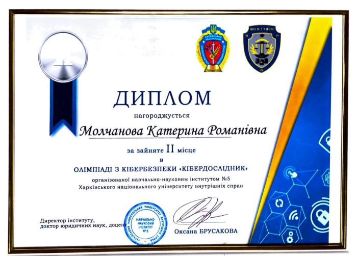За ініціативи директорки ННІ №5 ХНУВС Оксани БРУСАКОВОЇ та кафедри кібербезпеки та DATA-технологій з 17 по 23 березня поточного року проходила олімпіада з кібербезпеки «Кібердослідник» для здобувачів середньої освіти та фахової передвищої освіти. В ній взяли участь 87 учнів із різних областей України.