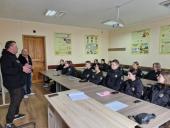 Психолог ознайомив курсантів з особливостями роботи з дітьми групи ризику, віковими характеристиками девіантної та залежної поведінки дітей. Особливу увагу він приділив роботі з дітьми у підлітковому віці в умовах воєнного стану. Не оминув також тему насильства у сім'ї та ґендерно зумовлене насильство, що є однією з причин девіантної поведінки дітей. Окремо Анатолій БРУНЬ зупинився на такому явищі у підлітків як «селфхарм» (самопошкодження), пояснивши причини його виникнення та методи роботи з такими дітьми.