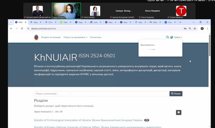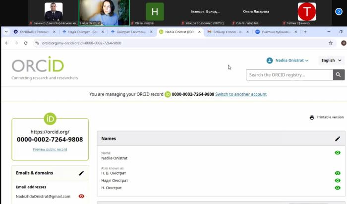 Начальниця відділу інформаційно-електронних ресурсів та сервісів загальної бібліотеки Надія ОНІСТРАТ провела для слухачів аспірантури (ад’юнктури) та докторантури інформаційно-практичний онлайн-захід на тему: «Формування особистого бренду науковця. Профіль науковця у базах: Google Scholar, ORCID, репозитарії ХНУВС».