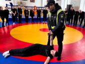 Під час практичного заходу курсанти ННІ №1 відпрацьовували прийоми захисту від ударів ножем, знешкодження та затримання озброєного правопорушника шляхом нанесення контрударів в озброєну кінцівку та уразливі точки тіла. Вони також опанували техніки обеззброєння і затримання з використанням кидків, больових прийомів та елементів комбінованого захисту.