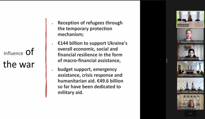 Учасники активно ставили запитання щодо можливих часових рамок вступу України до ЄС, на що спікерка відмітила складність і пролонгованість процедури вступу, необхідності сталого економічного прогресу держави-апліканта, а також загальний підхід до критеріїв вступу без винятків із встановлених правил.
