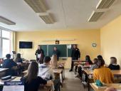 Представники відділу організації роботи з професійної орієнтації Харківського національного університету внутрішніх справ спільно зі старшим інспектором сектору кадрового забезпечення Звягельського районного відділу поліції ГУНП у Житомирській області Іваном ПРИЙМАКОМ провели низку профорієнтаційних заходів для випускників закладів загальної середньої освіти міста Звягель. Вони зустрілися з вихованцями та директором Звягельського ліцею з посиленою військово-фізичною підготовкою Віктором ОНИЩУКОМ. Під час зустрічі юнаків і дівчат ознайомили з умовами вступу до університету у 2025 році, особливостями навчання, спеціальностями та професіями, яким навчають у виші, та запросили вступати до Харківського національного університету внутрішніх справ.