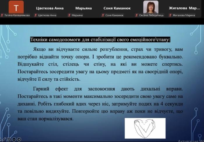 Викладачі кафедри соціології та психології ННІ №5: професорка Ольга МАРЧЕНКО, доцентки Олена МОХОРЄВА та Лілія БОНДАРЕНКО, старші викладачі Ігор ШЕЛКОШВЕЄВ і Лариса СОЛОХІНА організували та провели вебінари на тему «Інформаційна гігієна під час війни» з учнями ліцеїв Харківської міської ради №№58, 78, 91, 103, 118.