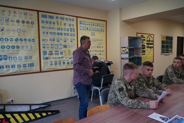 Завідувач відділення автомобільної підготовки безбар’єрної автошколи ХНУВС Олександр МАРУНЧАК ознайомив випускників Кам’янець-Подільського ліцею з посиленою військово-фізичною підготовкою Хмельницької області, їх вихователів і батьків із діяльністю безбар’єрної автошколи. Він розповів молоді, як проходять теоретичні та практичні заняття, а також ознайомив з аудиторіями, де слухачі відпрацьовують первинні навички водіння на комп'ютерних тренажерах, максимально адаптованих для людей з інвалідністю. Ліцеїсти мали змогу особисто протестувати ці тренажери в роботі та оглянути адаптовані автомобілі.