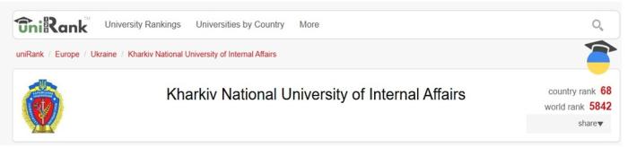 Поточний рейтинг UniRank вимірює популярність і відвідуваність сайтів та соціальних мереж 14000 університетів світу з 200 держав, зокрема 189 українських. Серед них – сім закладів вищої освіти системи МВС України.
