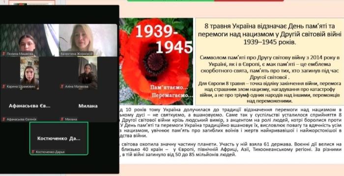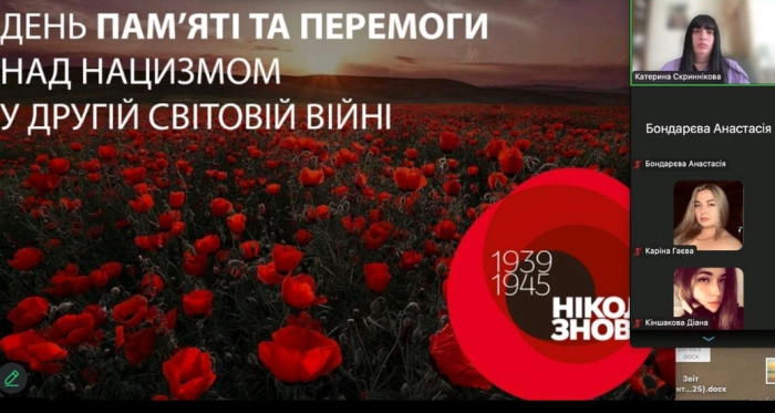 Куратори навчально-наукового інституту №5 провели кураторські години зі студентами з нагоди Дня пам’яті та перемоги над нацизмом у Другій світовій війні 1939–1945 років. Під час заходів учасники ознайомились з історичними фактами Другої світової війни, переглянули документальні матеріали, обговорили разом із кураторами події воєнних років того часу та поділилися думками щодо важливості збереження миру. Як і в минулому, український народ знову протистоїть агресору, який намагається нав’язати свою волю, зневажаючи закони міжнародного права та загальнолюдські моральні цінності. Лише єдність і рішучість здатні зупинити жорстоку війну.