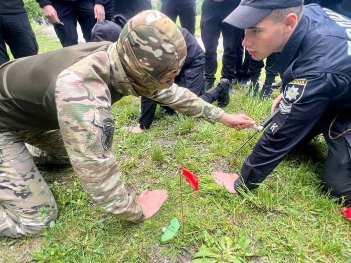 Здобувачі освіти відпрацювали практичні дії щодо ідентифікації вибухонебезпечних предметів, алгоритм дій під час отримання повідомлення про виявлення підозрілого предмета та механізм проведення нетехнічного та технічного обстеження території із дотриманням особистих заходів безпеки.