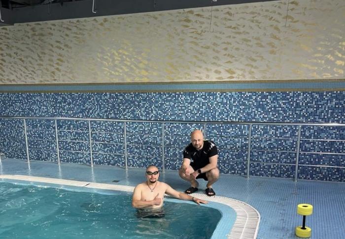 Зараз військовослужбовець відновлюється і важливу роль в цьому відіграє плавання – один із найефективніших методів фізичної та психологічної реабілітації. Заняття у воді сприяють зниженню рівня стресу, покращують загальне самопочуття, відновлюють рухливість і координацію, а також зміцнюють м’язовий корсет.
