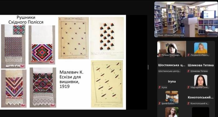 Захід проводився на базі Сумської обласної наукової бібліотеки, на якому старша наукова співробітниця Інституту української мови НАН України, кандидатка філологічних наук Ірина БРАГА розкрила тему «Мовна біографія Казимира Малевича». Через призму мовних традицій філологиня висвітлила етапи формування світогляду великого майстра.
