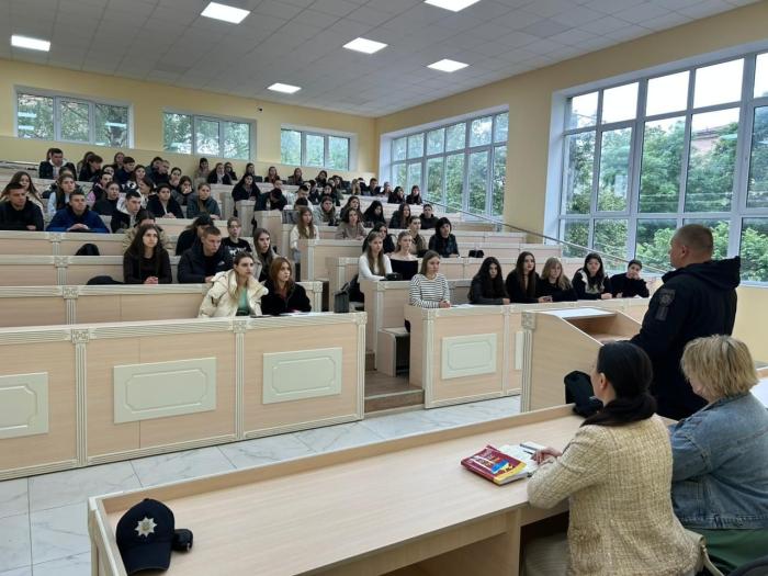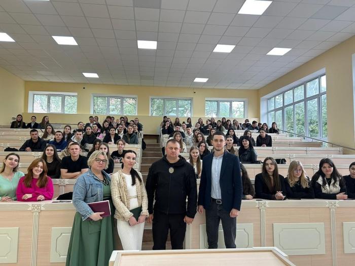 Захід для студентів другого курсу спеціальності «Право» ННІ №5 провів інспектор сектору ювенальної превенції відділу взаємодії з громадами Кам’янець-Подільського районного управління поліції ГУНП в Хмельницькій області Петро ПРИДРУГА.