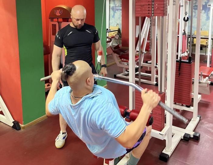 Заняття проходило в тренажерному залі й було спрямоване на зміцнення м’язів спини та рук, зокрема біцепсів. Програма тренування враховує індивідуальні особливості фізичного стану ветерана, а також базується на принципах поступового навантаження і відновлення функціональної сили.