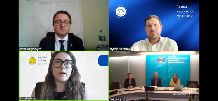 У межах серії Ukrainian Global Law Talks, проведеної Асоціацією правників України, начальниця відділу міжнародного співробітництва Тетяна МАТЮШКОВА, провідні фахівчині відділу Наталя САДОВА та Альона МУЗИЧУК, а також фахівчиня відділу Світлана ВЕЧІРКО долучилися до онлайн-обговорення нового етапу міжнародного правосуддя. Захід, присвячений рішенню Комітету міністрів Ради Європи про створення Спеціального трибуналу щодо злочину агресії проти України, проведений англійською мовою та відбувся за участі: т.в.о. директора Департаменту міжнародного права МЗС України, посла з особливих доручень МЗС України, агента України в Міжнародному суді ООН Антона КОРИНЕВИЧА та голови юридичної служби Ради Європи Йорга ПОЛЯКЕВИЧА. Модерували захід – президент Асоціації правників України Микола СТЕЦЕНКО та директорка Інституту прав людини Асоціації правників України Інна ЛІНЬОВА.