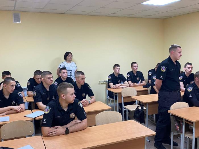 Для курсантів 1 курсу спеціальності «Правоохоронна дільність (поліцейські)» Сумської філії ХНУВС заняття за темою «Структура та завдання правоохоронних органів України» провели доцентки кафедри гуманітарних дисциплін Ганна ДОВГОПОЛОВА та Юлія САМОЙЛОВА за участі старшого інспектора сектору ювенальної превенції відділу превенції Сумського районного управління поліції ГУНП у Сумській області Івана ПОЛУЛЯХОВА.