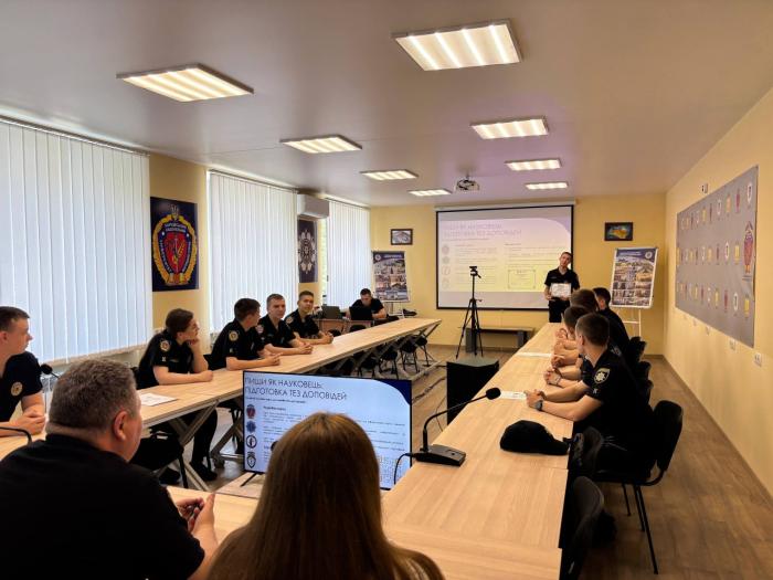Микола МАРЧУК звернув увагу на значення академічного письма під час написання тез доповідей, статей та наукових конкурсних робіт курсантами і важливість обов’язкового проходження курсу для першокурсників.