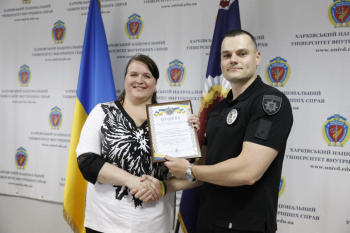 Провідна психологиня відділення психологічного забезпечення відділу кадрового забезпечення ХНУВС Тетяна САЗОНОВА виступила з доповіддю про заходи психологічного забезпечення курсантів ННІ №2 за 2024/2025 навчальний рік.