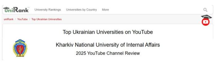 Платформа UniRank* опублікувала рейтинг найпопулярніших українських університетів за результатами діяльності їхніх офіційних YouTube-каналів. Під час укладання рейтингу враховувалися такі показники, як кількість підписників, переглядів і завантажених відео.