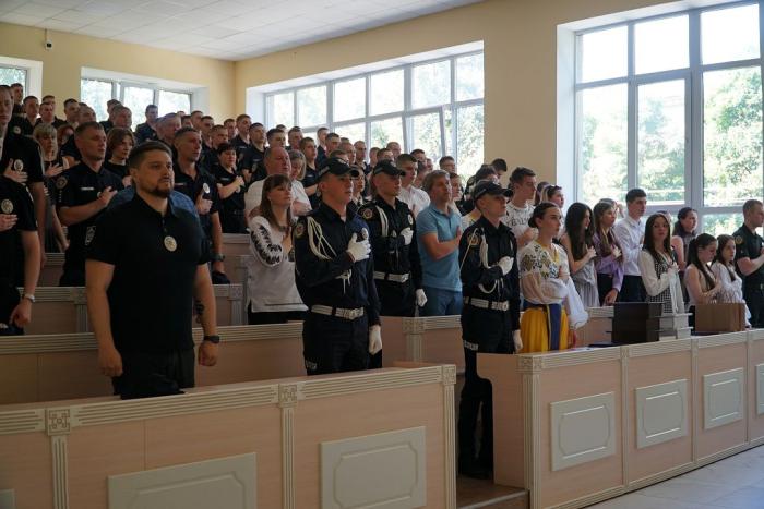 Від імені ректора університету, генерала поліції третього рангу Валерія СОКУРЕНКА працівників, курсантів і студентів зі святом привітав проректор Сергій БОРТНИК. Він зазначив, що в умовах війни День Конституції України набув особливого значення, адже є символом незалежності, мужності, стійкості та незламності українського народу, віри у перемогу над ворогом і подальшого мирного європейського розвитку нашої держави. Проректор висловив подяку присутнім за віддану службу, наполегливу працю, старанне навчання та вручив почесні відзнаки: