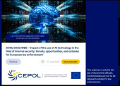Представники науково-дослідної лабораторії з проблем правового забезпечення діяльності поліції та протидії злочинності – завідувач Костянтин БУГАЙЧУК і головна наукова співробітниця Олена ФЕДОСОВА – взяли участь у вебінарі «Вплив використання технологій штучного інтелекту в галузі внутрішньої безпеки: загрози, можливості та перспективи для європейських правоохоронних органів» (Impact of the use of AI technology in the field of internal security: threats, opportunities, and outlooks for European law enforcement), який проводився Європейським поліцейським коледжем (CEPOL).