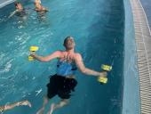 Під час плавання використовувались спеціальні засоби – пояс для аквааеробіки та водні гантелі. Вони дозволяють ефективно виконувати вправи без надмірного навантаження на опорно-руховий апарат.