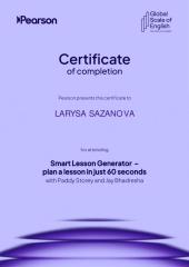 Завідувачка кафедри мовної підготовки Олена СТАТІВКА, доцентка Валентина КОЧИНА та старші викладачі Лариса САЗАНОВА та Артем БІЛОУСОВ долучилися до Міжнародного онлайн-вебінару «Smart Lesson Generator – plan a lesson in just 60 seconds» від компанії Pearson. Спікери заходу ознайомили учасників із інструментом, створеним на базі штучного інтелекту, який генерує додаткові завдання для занять. Розумний генератор підключено до курсів Pearson, що допоможе викладачам англійської мови спланувати заняття за лічені секунди та покращити їх якість.