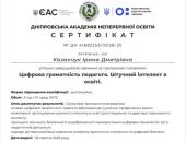 Професорка кафедри адміністративного права та процесу ННІ №3 Ірина КАЗАНЧУК долучилася до освітнього курсу за програмою «Цифрова грамотність педагога. Штучний інтелект в освіті», організованому Дніпровською Академією неперервної освіти за підтримки партнерів ЄАС (інститутів підвищення кваліфікації) та Громадської організації «ЦИФРОВІЗАЦІЯ ОСВІТИ УКРАЇНИ». Викладачка отримала знання та навички з основ цифрової грамотності педагога відповідно до сучасних професійних вимог, щодо можливостей застосування штучного інтелекту в освіті для створення та адаптації освітнього контенту, принципів етичного, безпечного та доброчесного використання цифрових технологій і ШІ у педагогічній діяльності.