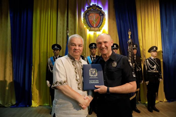 За зразкове виконання службових обов’язків в умовах воєнного стану, високий професіоналізм, вагомий особистий внесок у підготовку висококваліфікованих спеціалістів Почесною грамотою Харківської обласної військової адміністрації нагороджено помічника ректора ХНУВС Віктора СЛИША.