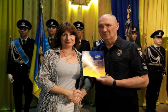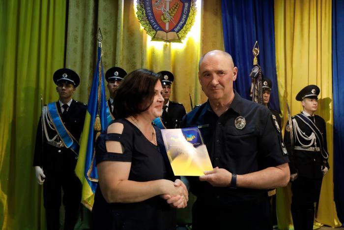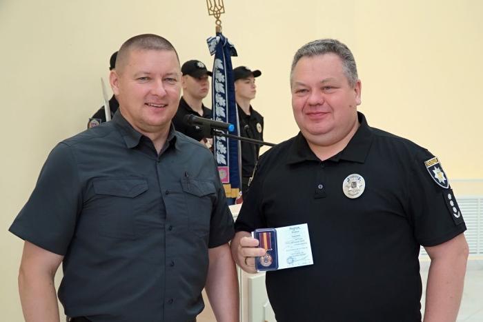 від імені начальника Головного управління Національної поліції в Хмельницькій області Руслана ГЕРАСИМЧУКА нагороджено медаллю «За гідність та патріотизм» – директора ННІ №4 Миколу МАРЧУКА;