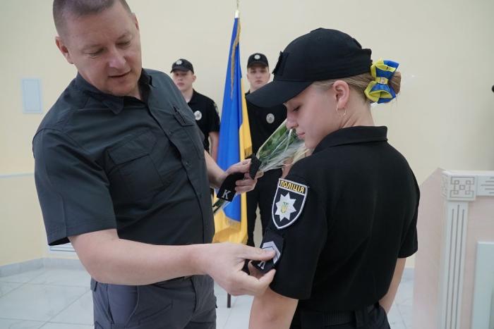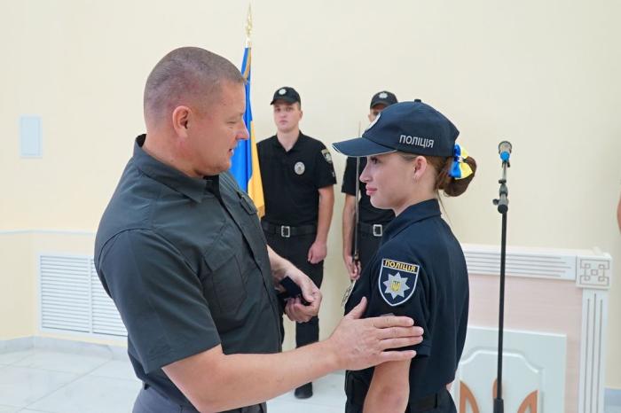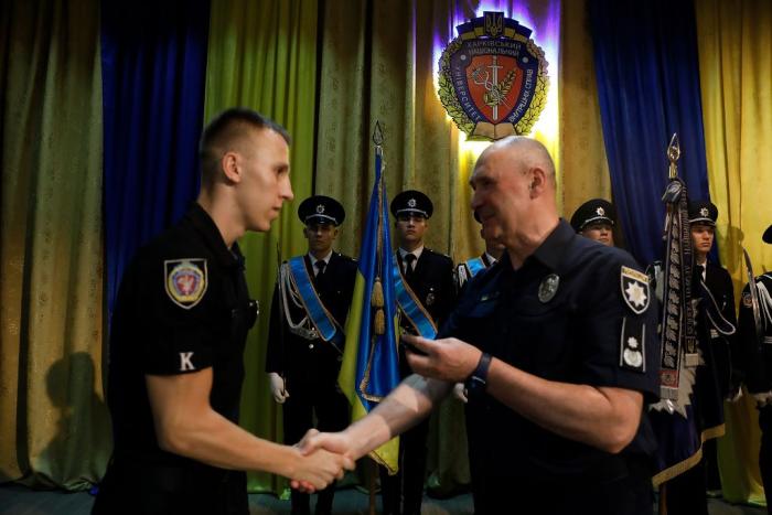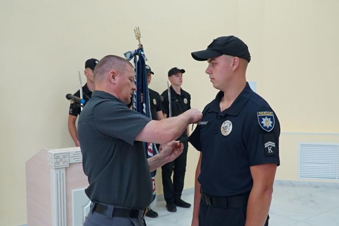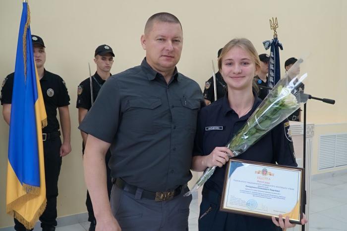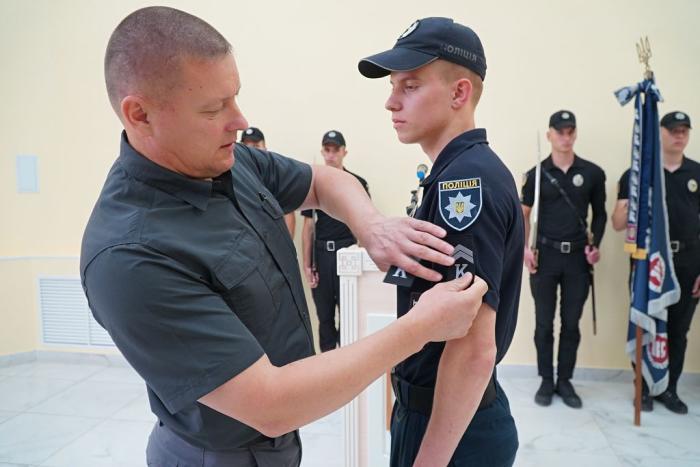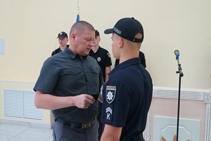 Проректор привітав і вручив погони курсантам, яким присвоєно чергові спеціальні звання молодшого складу. Погони капрала поліції отримали: