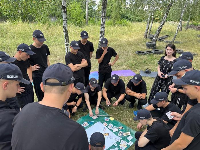 Під час табірного збору тривають заходи з психологічного супроводу адаптації вступників 2025 року. Психологи відділення психологічного забезпечення відділу кадрового забезпечення ХНУВС проводять тренінгові заняття для курсантів ННІ №2 та ННІ №3. Основна мета таких заходів – створення сприятливих умов для налагодження міжособистісних контактів і підвищення групової та загальної згуртованості.