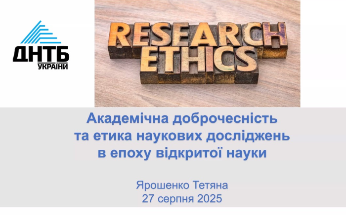 Перший вебінар на тему «Академічна доброчесність та етика наукових досліджень в епоху відкритої науки» був присвячений новим викликам, що постають перед науковою спільнотою. Учасники детально розглянули фундаментальні принципи академічної етики, зокрема питання протидії плагіату та фальсифікації даних в умовах цифрового середовища. Спікери звернули особливу увагу на етичні аспекти використання штучного інтелекту в дослідженнях, механізми забезпечення прозорості та відтворюваності наукових результатів, а також роль комітетів з етики (IRB) в адаптації дослідницьких процедур до вимог міжнародної співпраці.