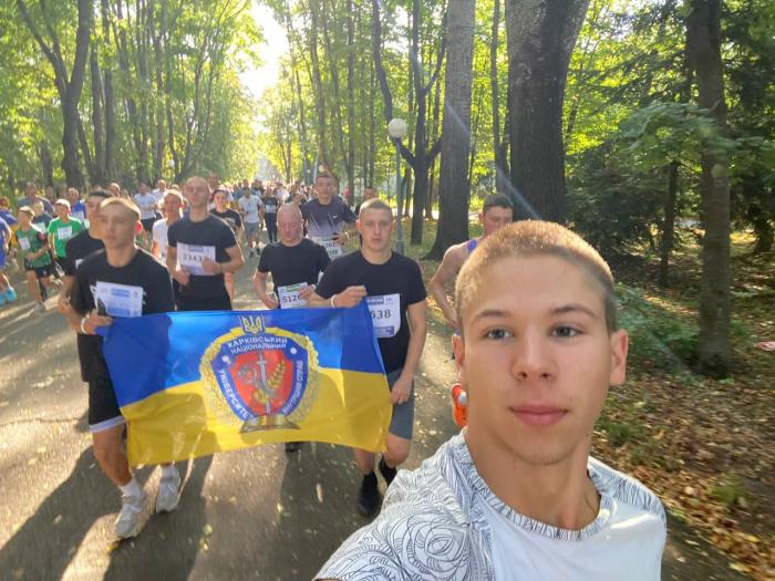 Разом із військовослужбовцями, волонтерами, представниками громадських організацій та місцевими мешканцями дистанцію долали й курсанти Харківського національного університету внутрішніх справ. Вони вшанували подвиг полеглих воїнів і продемонстрували вдячність усім, хто сьогодні боронить державу.