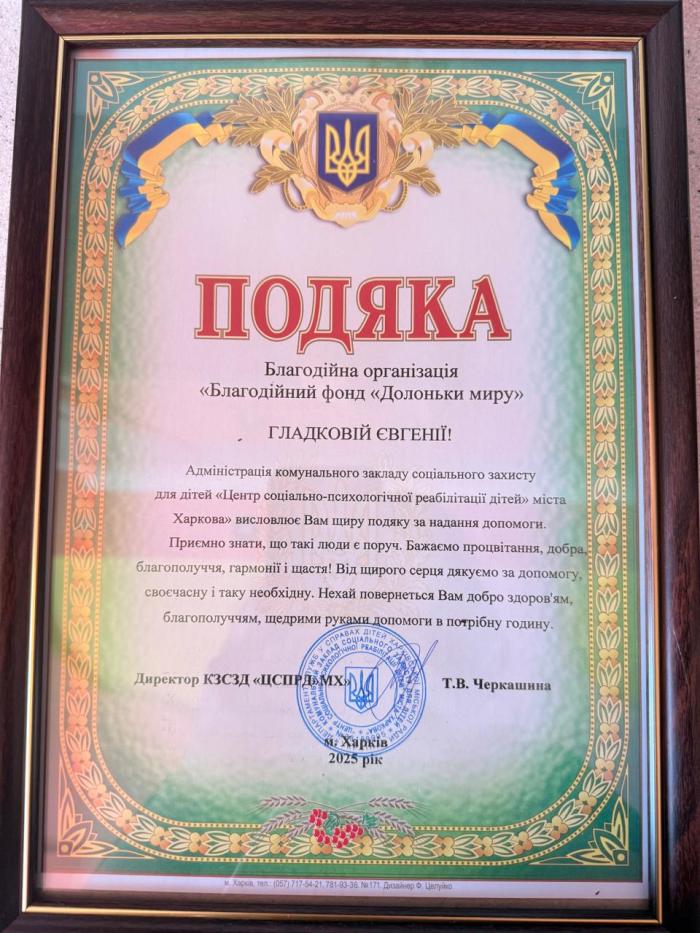 У День знань провідна наукова співробітниця науково-дослідної лабораторії соціально-психологічного супроводу та реабілітації працівників МВС ННІ №3 Євгенія ГЛАДКОВА отримала Подяку від директорки комунального закладу соціального захисту для дітей «Центр соціально-психологічної реабілітації дітей міста Харкова» Тетяни ЧЕРКАШИНОЇ за активну громадянську позицію, проявлену волонтерську ініціативу, небайдужість і людяність. Євгенія вже третій рік поспіль є волонтером Благодійного фонду «Долоньки миру» та допомагає дітям, які потребують особливої уваги та підтримки.