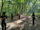 Заняття за темою «Моделювання ситуацій під час застосування заходів поліцейського примусу» проводилося з використанням обладнання для страйкболу та піротехнічних засобів, що дало змогу максимально наблизити умови до реальних.