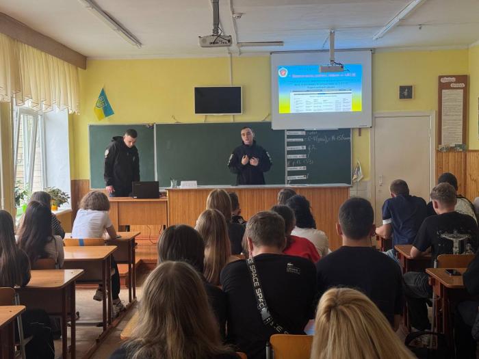 У Кам’янець-Подільському ліцеї №7 відбувся профорієнтаційний захід, організований представниками навчально-наукового інституту №4, мета якого – ознайомлення учнів із професією поліцейського, спеціальностями, які здобувають курсанти та студенти у ХНУВС, а також із сучасними викликами у сфері кібербезпеки.