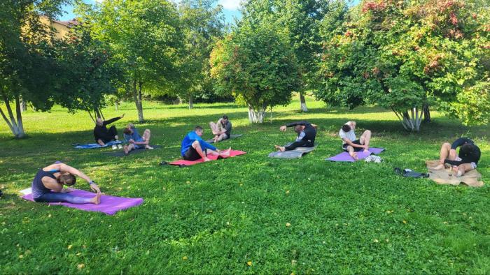 У неділю відбулося виїзне практичне заняття для курсантів навчально-наукових інститутів №2 та №3 – учасників науково-практичного гуртка кафедри тактико-спеціальної підготовки «ЩИТ». Програмою заходу були передбачені вправи з пілатесу, йоги та тренування з використанням SUP-дошок.