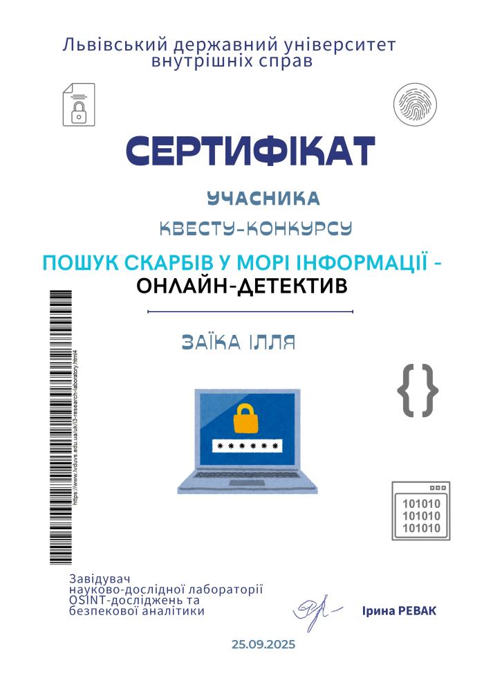 Захід проведено за методичного й організаційного забезпечення Науково-дослідної лабораторії OSINT-досліджень і безпекової аналітики Львівського державного університету внутрішніх справ, яка й надалі планує популяризувати використання методів OSINT у правоохоронній діяльності.