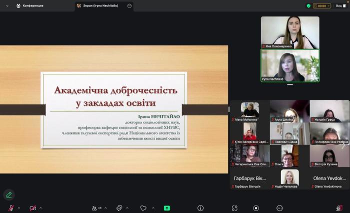 Почесною гостею стала членкиня галузевої експертної ради СIII «Соціальні науки», докторка соціологічних наук, професорка Ірина НЕЧІТАЙЛО, яка виступила з доповіддю «Академічна доброчесність у закладах вищої освіти та психологія дослідника».
