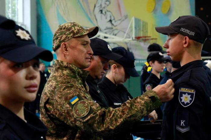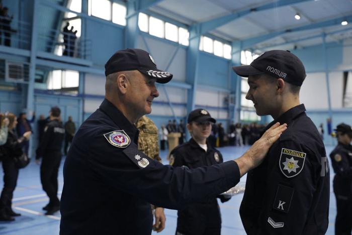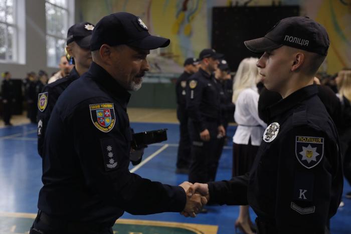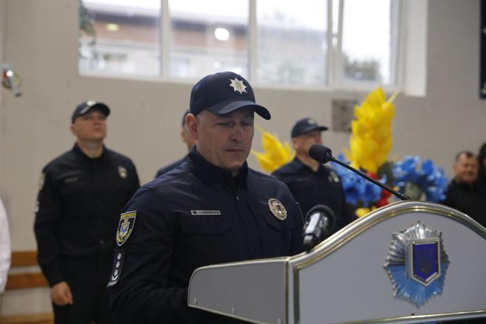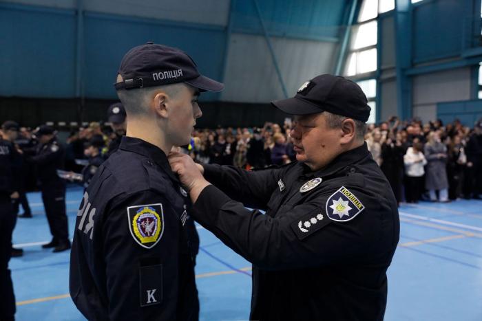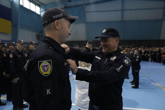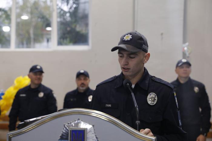 Від імені керівництва Міністерства внутрішніх справ та Національної поліції курсантів привітав Перший заступник Голови Нацполіції – начальник Головного слідчого управління Максим ЦУЦКІРІДЗЕ: «Від сьогодні ви – справжні поліцейські з усім спектром прав і обов’язків, як і ті, хто несе службу та воює на фронті. Ви обрали почесний і відповідальний шлях. Сумлінно навчайтесь, займайтесь спортом – у вас є всі можливості. Не втрачайте надію на краще майбутнє і разом наближайте Перемогу!»