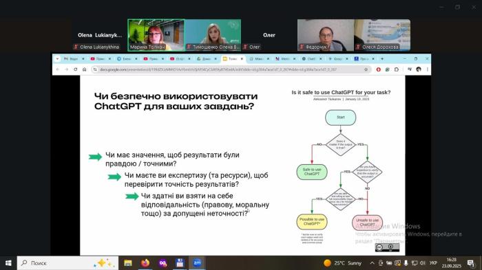 Учасники опанували практичні підходи до інтеграції ШІ в педагогічну діяльність, ознайомилися з можливостями генеративних інструментів для створення навчального контенту та інноваційними платформами, що сприяють підвищенню мотивації здобувачів освіти. Вони також засвоїли принципи безпечного, відповідального й етичного застосування ШІ в освітньому середовищі.