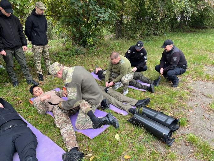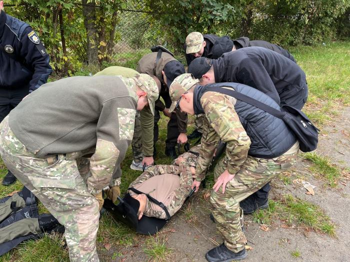 Курсанти практично відпрацювали алгоритм проведення первинного огляду постраждалого, оцінки травм, особливостей роботи при масивних кровотечах. Окрему увагу приділили практичним навичкам з надання домедичної допомоги та евакуації поранених.