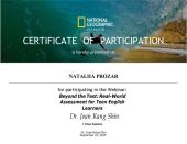 Викладачка кафедри мовної підготовки Наталія ПРОЗАР долучилася до Міжнародного онлайн-вебінару «Beyond the Test: Real-World Assessment for Teen English Learners» від компанії National Geographic Learning.