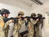 Курсанти ознайомилися з алгоритмом дій малих груп, подоланням зон небезпеки, перевіркою будівель та технікою маневрування малих груп на відкритій місцевості, видами маскування шкіри, одностроєм, зброєю та обладнанням.