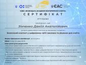 Ад'юнкт відділу аспірантури (ад'юнктури) і докторантури Данііл ЗІНЧЕНКО пройшов онлайн-курс на тему «Безпечний контент у цифровому світі: виклики та рішення для освіти». Учасники опанували правила створення безпечного цифрового освітнього середовища та сучасні виклики небезпечного контенту; основи нормативно-правової бази щодо цифрової безпеки та захисту персональних даних; використання цифрових інструментів для безпечного інформаційного простору в освіті; ефективні форми взаємодії педагогів, учнів і батьків у питаннях цифрової безпеки; критичний аналіз інформації та розпізнавання деструктивного або маніпулятивного контенту.