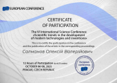 У межах міжнародної наукової діяльності курсанти ННІ №1 Кіра НАБІЛЬСЬКА та Данило ТЕСЛЯ за наукового керівництва заступника директора інституту з освітньої та науково-дослідної діяльності Олексія САЛМАНОВА взяли участь онлайн у VI Міжнародній науково-практичній конференції «Наукові тенденції розвитку сучасних технологій та винаходів», що відбулася в м. Прага (Чеська Республіка).