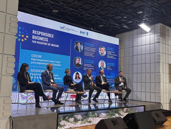 Першим заходом стала Міжнародна конференція «Відповідальне ведення бізнесу для відновлення України: шлях до сталих інвестицій та євроінтеграції», організована Міністерством економіки, довкілля та сільського господарства України спільно з Програмою розвитку ООН (ПРООН), Національним юридичним університетом імені Ярослава Мудрого, ГО «Центр “Соціальна дія”» та Офісом зеленого переходу. Захід об’єднав представників урядових структур, міжнародних організацій, бізнесу та академічної спільноти для обговорення впровадження принципів відповідального ведення бізнесу, належної обачності у сфері прав людини та екології в контексті післявоєнного відновлення України.
