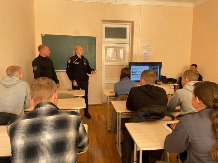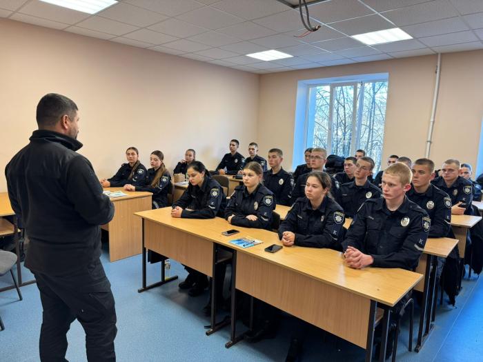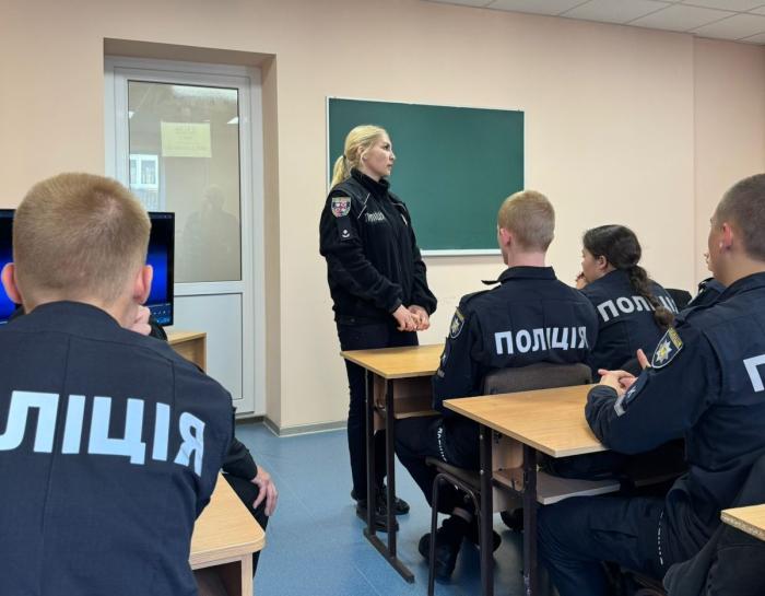 До розмови приєдналася начальниця сектору з дотримання прав людини Вінницького районного управління поліції ГУНП у Вінницькій області Олена СУВОРОВА. Вона обговорила з курсантами роль поліцейського в сучасному суспільстві, наголосила на важливості дотримання прав людини та виховання високих моральних принципів у службовій діяльності.
