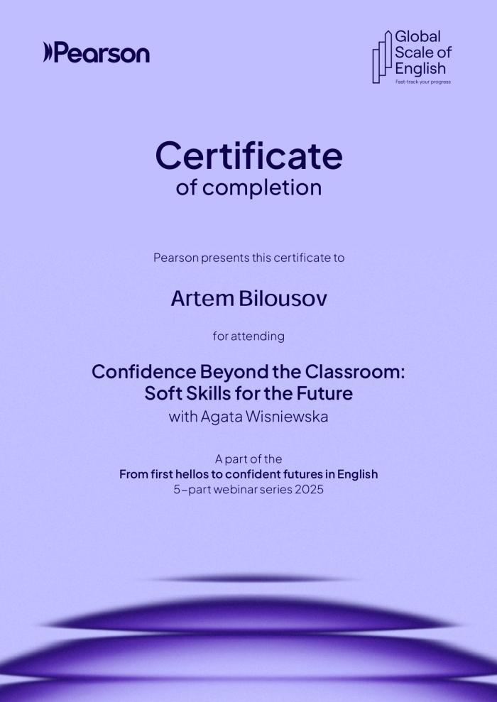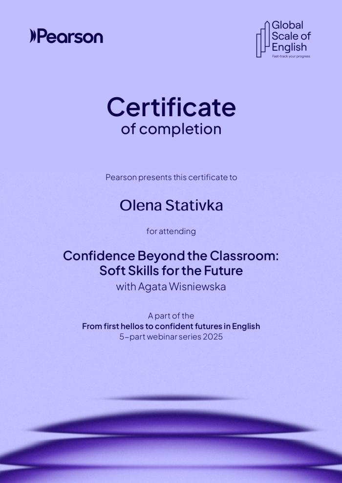 Викладачі кафедри ознайомилися із практичними методами інтеграції глобальної шкали англійської мови Pearson та шістю моделями м’яких навичок у планування занять. Набутий досвід допоможе забезпечити розвиток необхідних соціальних компетенцій паралельно з розвитком мовних навичок та підготувати здобувачів освіти до успішної командної роботи в динамічних середовищах, адаптивності та стійкості.