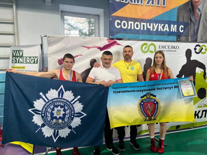 Не менш яскраво виступили здобувачі освіти університету на Всеукраїнському турнірі з боксу, що проходив у Кам’янці-Подільському на честь тренера Миколи Солопчука. Серед 36 команд із України та Молдови представники ХНУВС продемонстрували високий рівень майстерності: