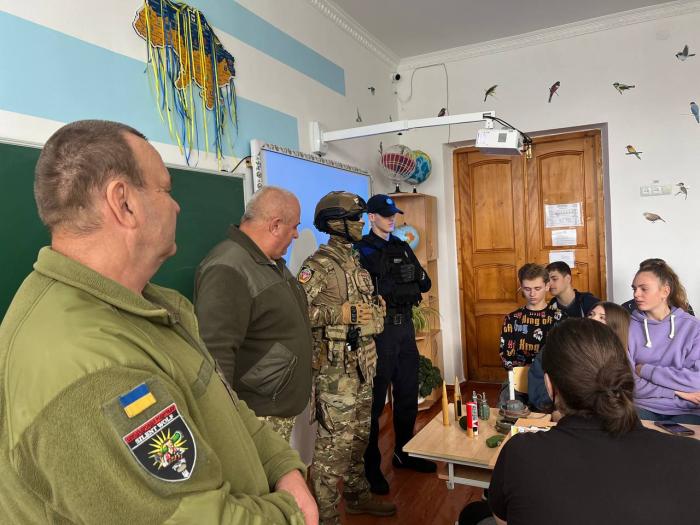 З метою посилення військово-патріотичного виховання молоді та формування у підлітків свідомого ставлення до питань безпеки старші викладачі кафедри тактико-спеціальної підготовки навчально-наукового інституту №2 Михайло БАМБУЛЯК та Олег ЯНКОВСЬКИЙ спільно з курсантами ННІ №4 Дмитром КАРПОВИМ і Олександром МАРИНКЕВИЧЕМ провели навчально-профілактичне заняття для учнів опорного ліцею міста Хотин.